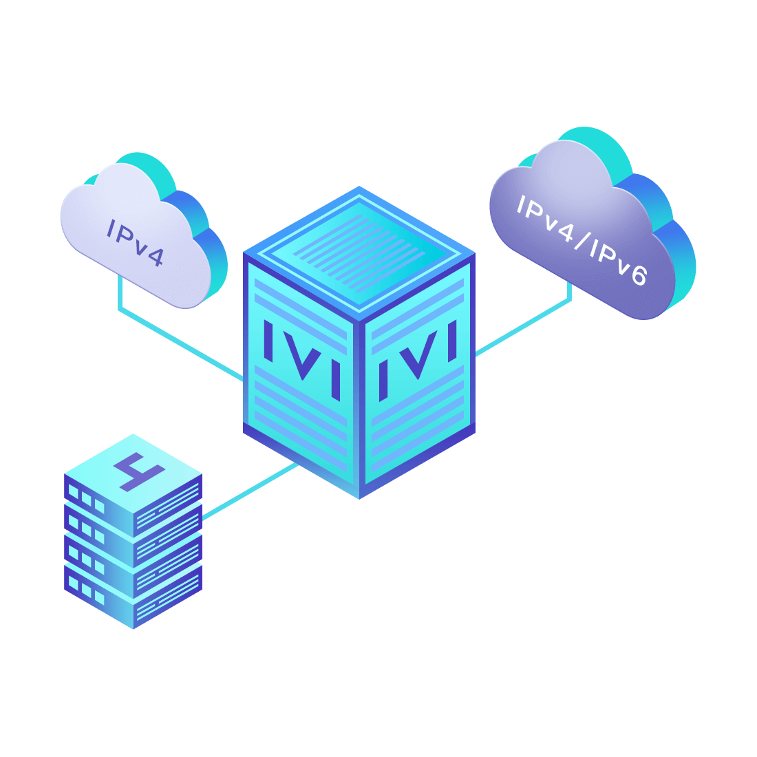 對正在進行IPv6整體升級規(guī)劃的運營商,應用IPv6升級方案2.5,通過IVI無狀態(tài)翻譯技術和純IPv6接入網(wǎng)絡,為雙棧客戶端和雙棧服務器提供連通服務。